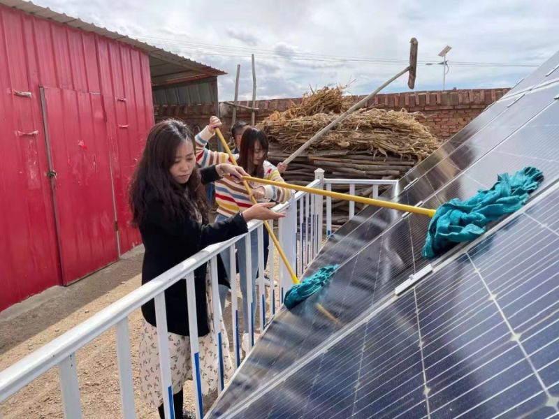 開(kāi)投集團(tuán)機(jī)關(guān)黨支部43名黨員和9名積極分子按照4名同志包聯(lián)1戶(hù)的安排,對(duì)沙爾沁鎮(zhèn)26戶(hù)扶貧戶(hù)的農(nóng)村分布式光伏發(fā)電項(xiàng)目進(jìn)行維護(hù),并清洗光伏板。
