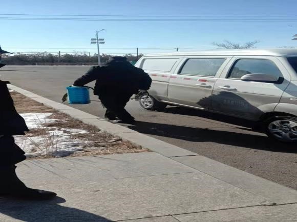 圖為愛邇公司對廠區(qū)環(huán)境及車輛進行全面消殺