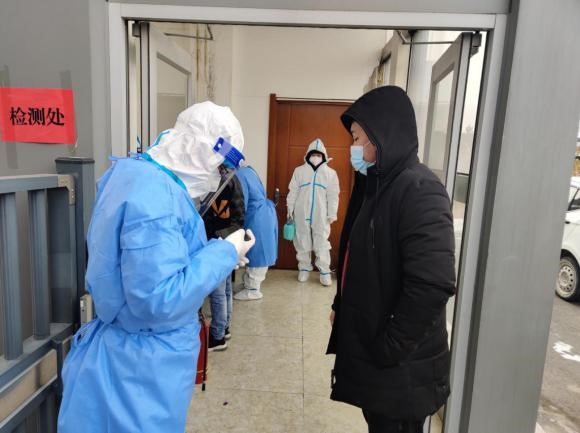 圖為愛邇公司組織廠區(qū)人員有序進行核酸檢測