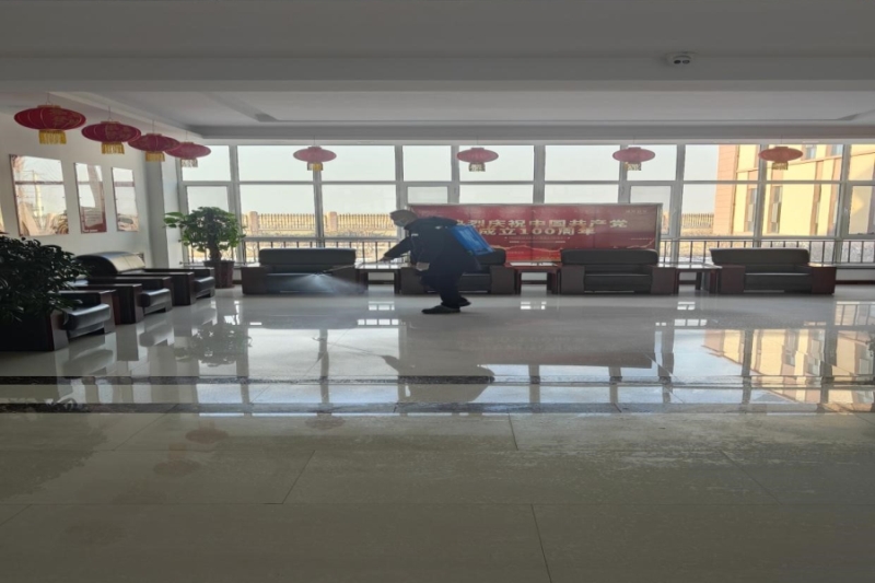 圖8為澤霖公司工作人員進行辦公區(qū)域消殺
