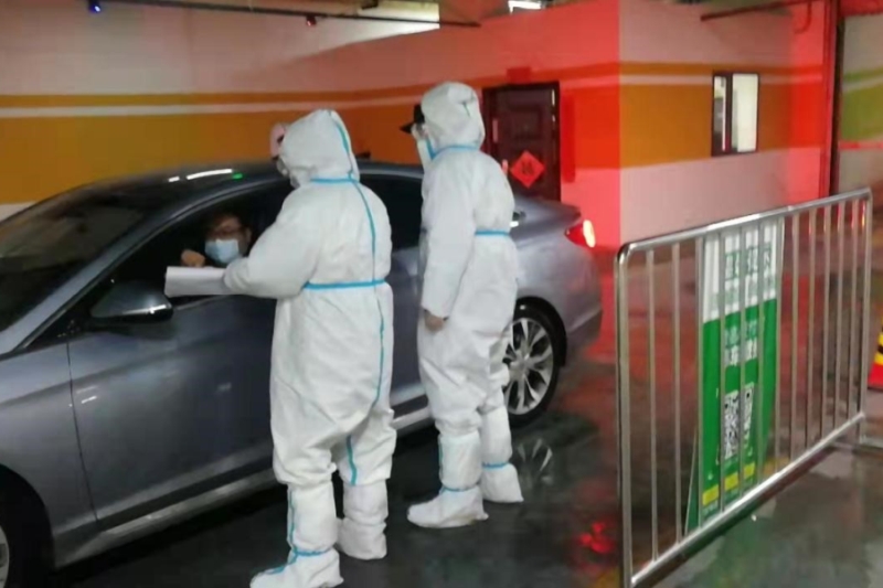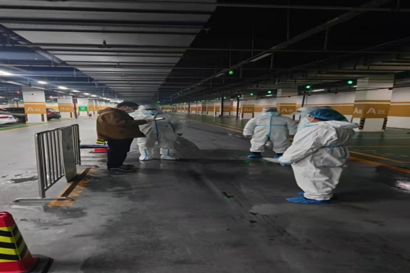 行動及時高效,保障王府井奧萊小鎮(zhèn)安全停車環(huán)境。開投集團子公司春華怡和置業(yè)公司及時行動、多措并舉抓好水岸小鎮(zhèn)H區(qū)(項目)地下停車場防控,于2月16日早及時行動,對地下停車場即刻采取疫情防控管理應急措施,封閉停車場東北入口及東南出口,只開放南出入口。置皓公司全體員工24人(含物業(yè)臨聘人員14人)全部投入到停車場防疫工作,他們身穿隔離服、戴隔離面罩及防護口罩,在加強自身防護的前提下,對停車場進行“地毯式”消殺,嚴格按規(guī)范進行噴灑,不放過任何一處死角,對重點區(qū)域進行定時消殺。對進入車輛進行輪胎及車輛外圍消殺,對車上人員測量體溫、查看健康碼、核查核酸檢測情況,并對車內(nèi)人員進行詳細的信息登記,提醒他們做好個人防護。同時建立應急機制,設置地下停車場隔離室,對突發(fā)情況第一時間上報,從嚴從實筑起疫情防線,確保停車環(huán)境安全。