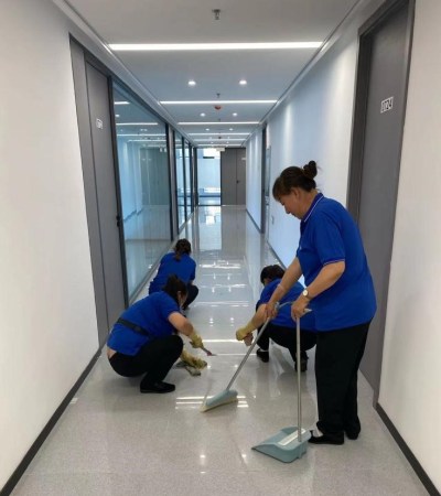 圖為樓內(nèi)衛(wèi)生精細(xì)化清理